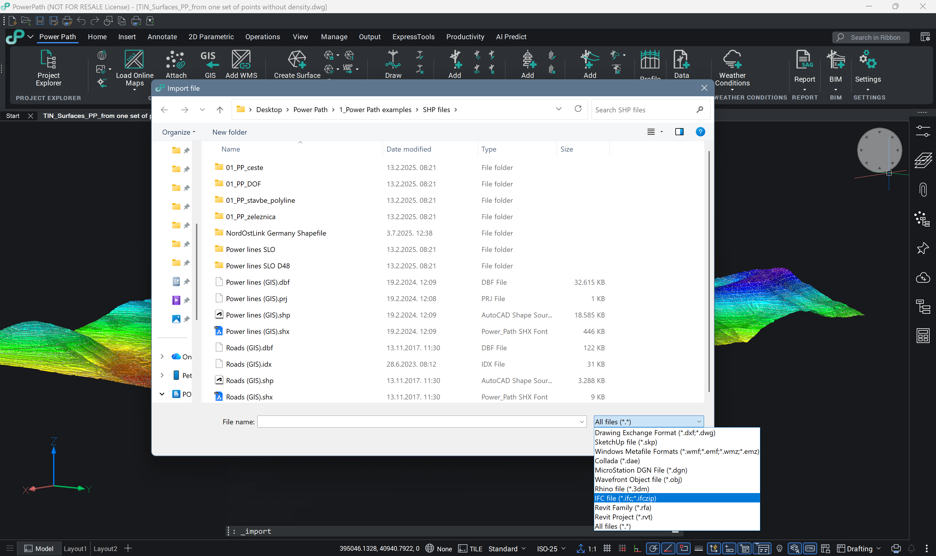 Note: If you don’t see the option to select an IFC file (*.ifc) under Files of type, check which Power Path package you have installed. BIM commands are available only in the Power Path BIM package.