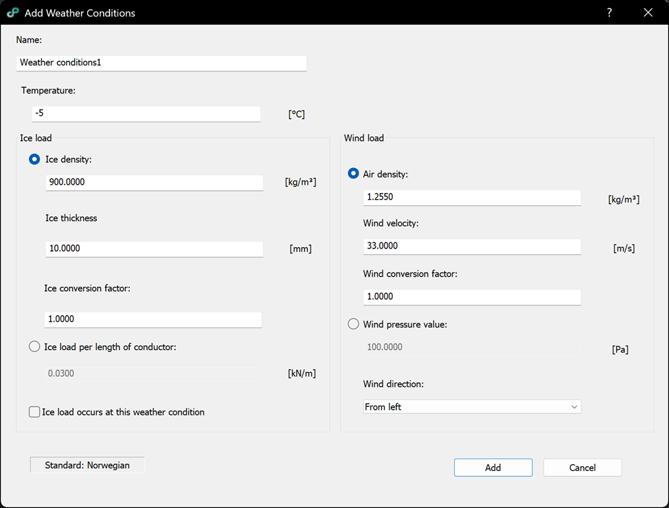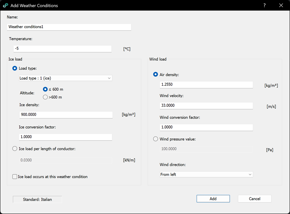 – Ice load occurs at this weather condition check: if checked conductors will be modelled with ice load.