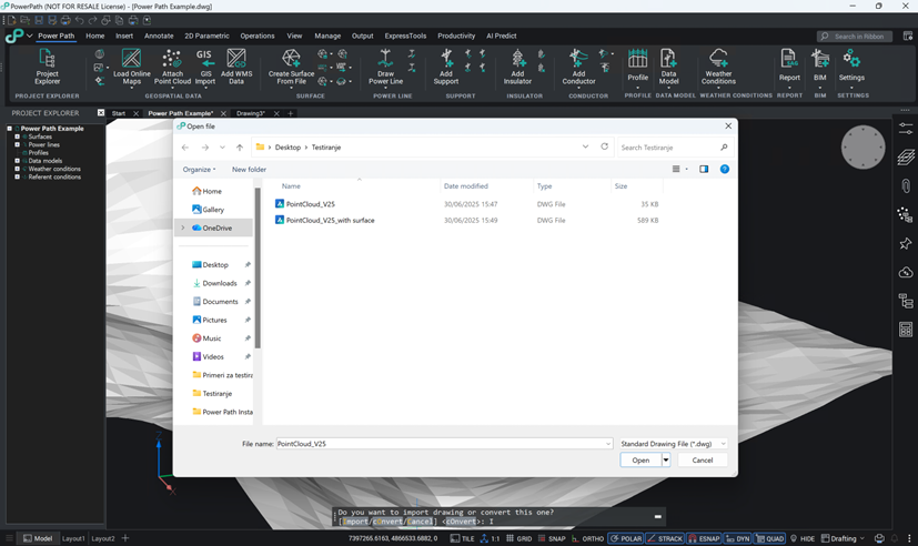 Imports and/or converts Leica Infinity data and native CAD entities into the drawing.